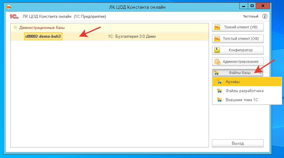 Для доступа к каталогам базы необходимо зайти в Личный кабинет, выделить необходимую базу и нажать на кнопку "Файлы базы":